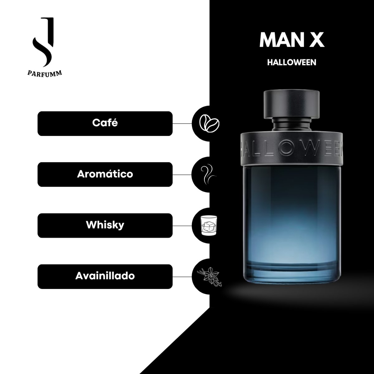 Halloween Man X es una fragancia masculina intensa, moderna y adictiva, diseñada para el hombre que vive la noche con actitud, misterio y confianza. Con un carácter oscuro y seductor, este perfume destaca por su combinación única de notas dulces, especiadas y gourmand.